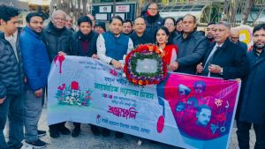 তারা পুষ্পস্তবক অর্পণের মাধ্যমে ১৯৫২ সালের মহান ভাষা আন্দোলনের শহীদদের স্মরণ করেন এবং এক মিনিট নীরবতা পালন করেন।
